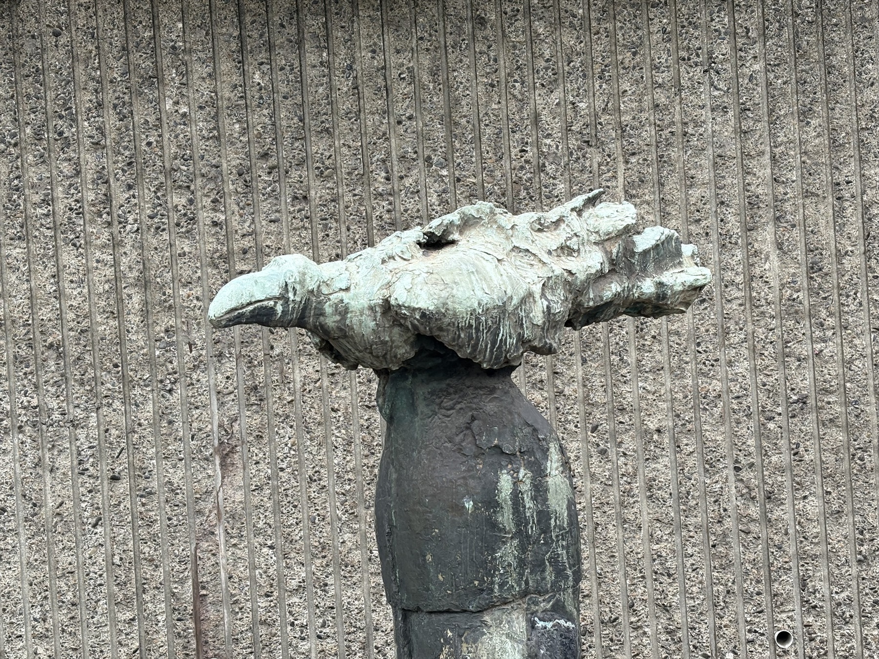 このオブジェ、画像ではサイズ感が伝わりません。車止めのポールに乗る実物大のカラスくらいに見えますが、実は結構大きいんです。