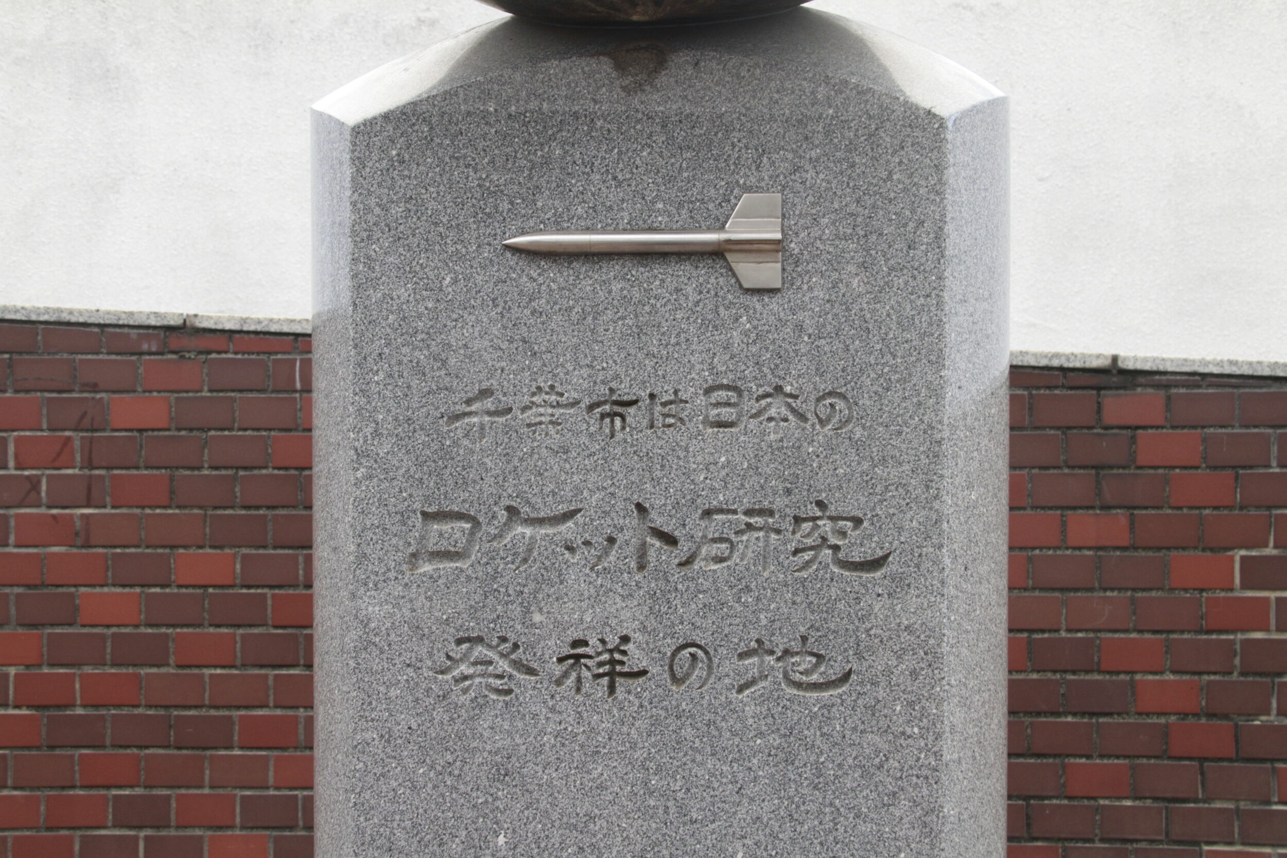 日本初の国産ロケット「ペンシルロケット」が誕生し、1956年4月に発射実験が行われ、これを大型ロケット基礎研究とし、その後も様々な開発や実験が行われることになった。日本初の国産ロケット「ペンシルロケット」 第二次世界大戦後、自信を失っていた日本でロケット開発という壮大で夢が溢れる事業が、この千葉市を最初の拠点に始まったことを記念して建立された。