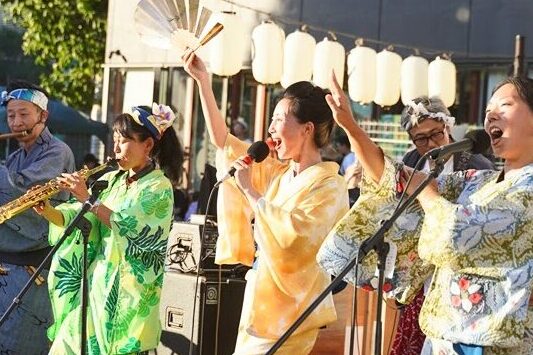 演奏パフォーマンス、櫓(やぐら)を囲んで踊る老若男女、DJの奏でるリリック、バリエーション豊富な屋台。
