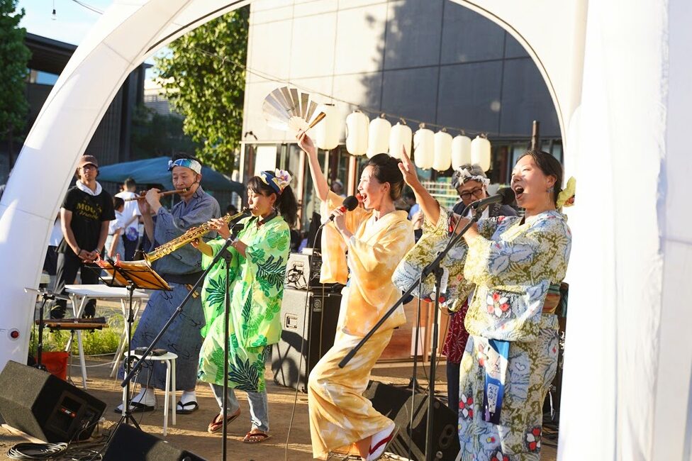 まず、会場を沸かせたのは生唄・生バンドによる盆踊りアーティスト「イマジン盆踊り部」。