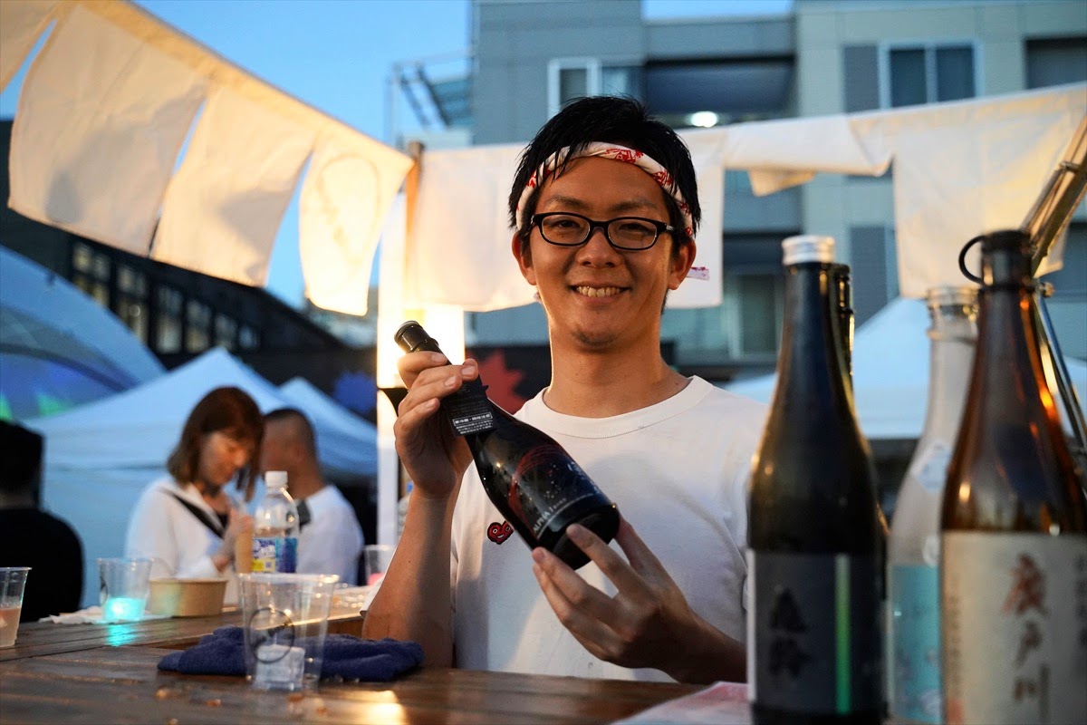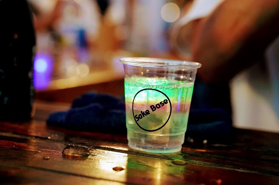 種類豊富な日本酒に、明かりのついたブロックを添えるオシャレさ。