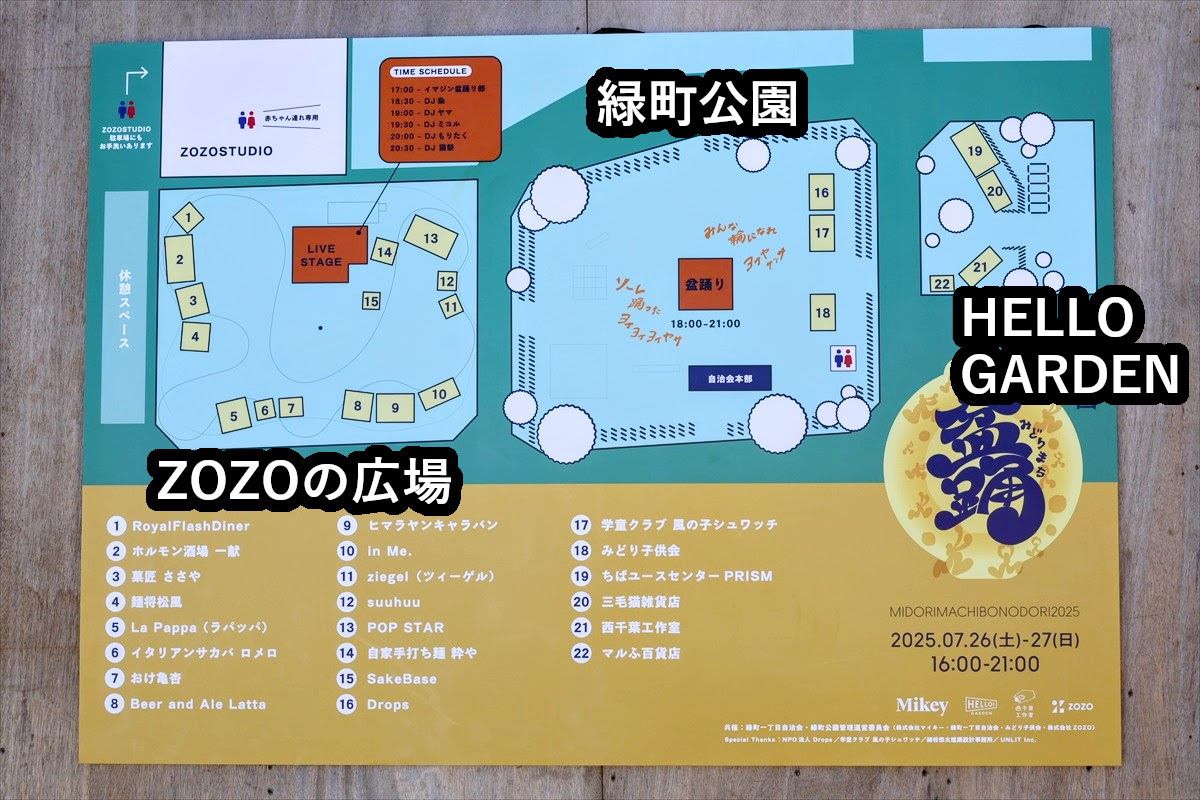 緑町公園では、昔ながらのみどりまち盆踊り文化を残しつつ、ZOZOの広場・HELLO GARDENでは新しい取り組みを行う。それぞれの良さで、昔から住んでいる人、最近この地にやってきた方、皆が楽しめるお祭りになったと喜ばれていました。